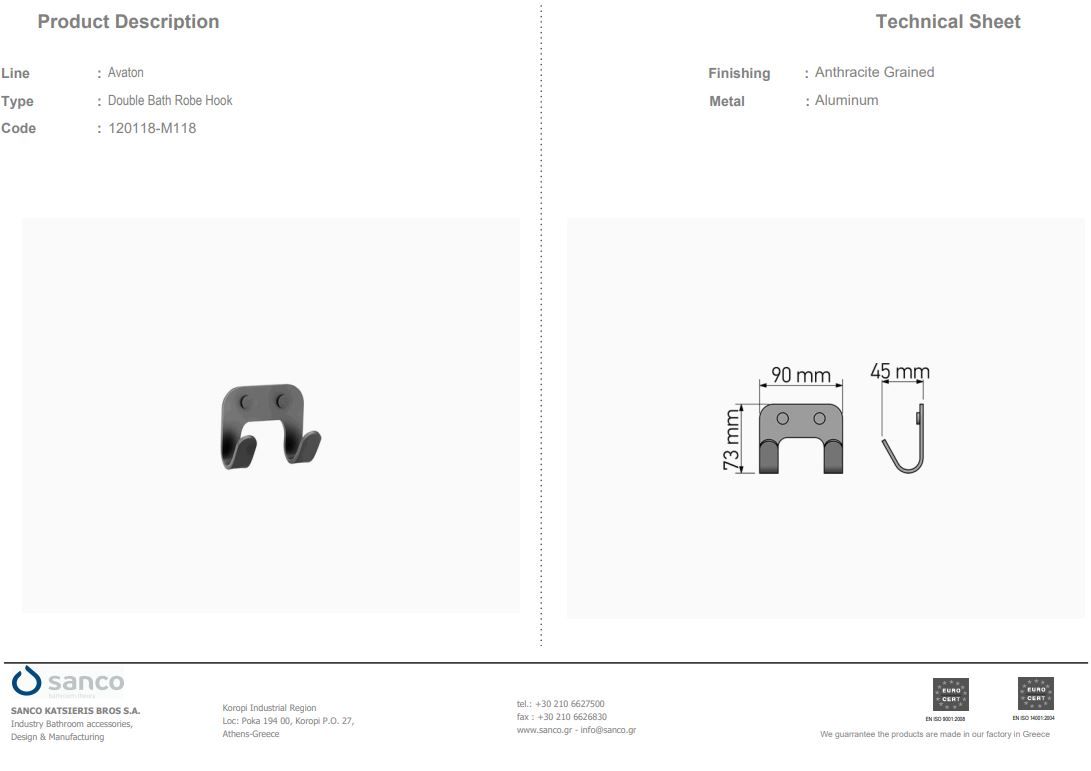 Άγκιστρο Διπλό Επίτοιχο W9xD4,5xH7 cm Sanco Avaton Graphite Dark 120118-122