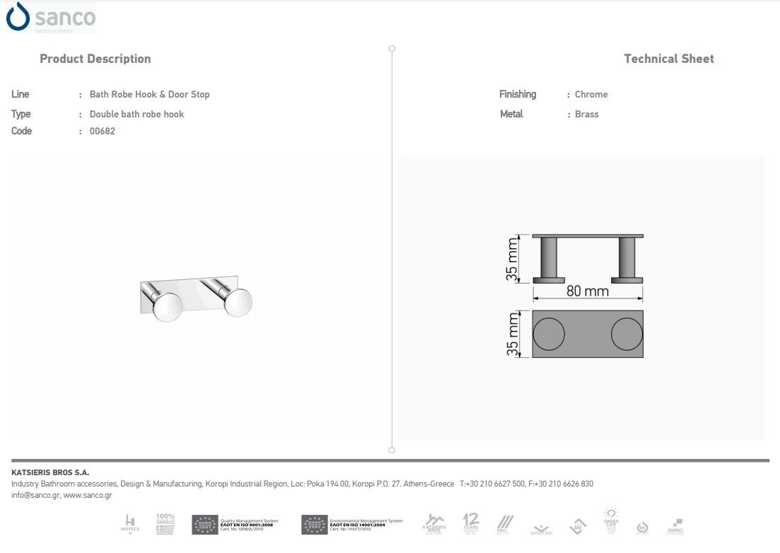 Άγκιστρο Διπλό Bronze Mat W8,5xD3,5xH3,5cm Sanco Bath Robe Hook 0682-M25