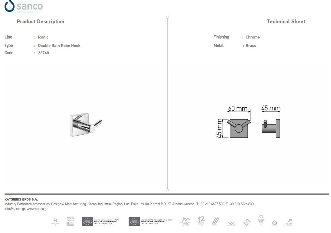 Άγκιστρο Διπλό Sanco Iconic Black Mat 26748-M116