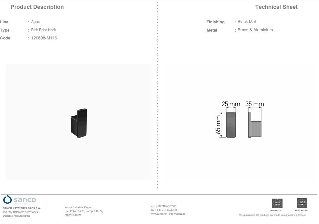 Άγκιστρο Μονό Επιτοίχιο Beige Mat Sanco Agora 120608-M102