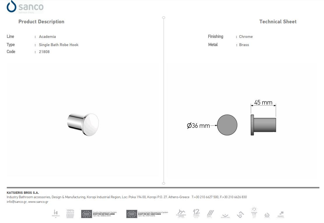 - Άγκιστρο Μονό Sanco Academia Chrome Mat 21808-A03 Ειδική Τιμή 13,50 € Κανονική τιμή 15,00 €