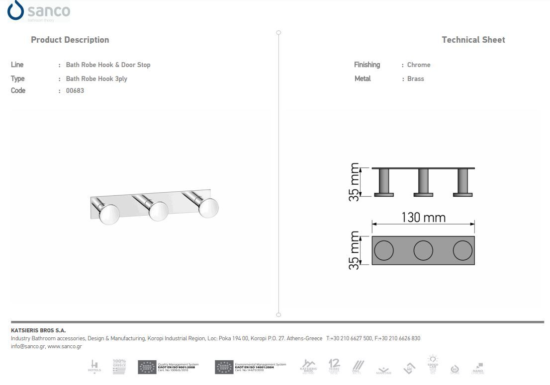 Άγκιστρο Διπλό Χρωμέ W8,5xD3,5xH3,5cm Sanco Bath Robe Hook 0682-A03Ειδική Τιμή 31,50 € Κανονική τιμή 35,00 € -