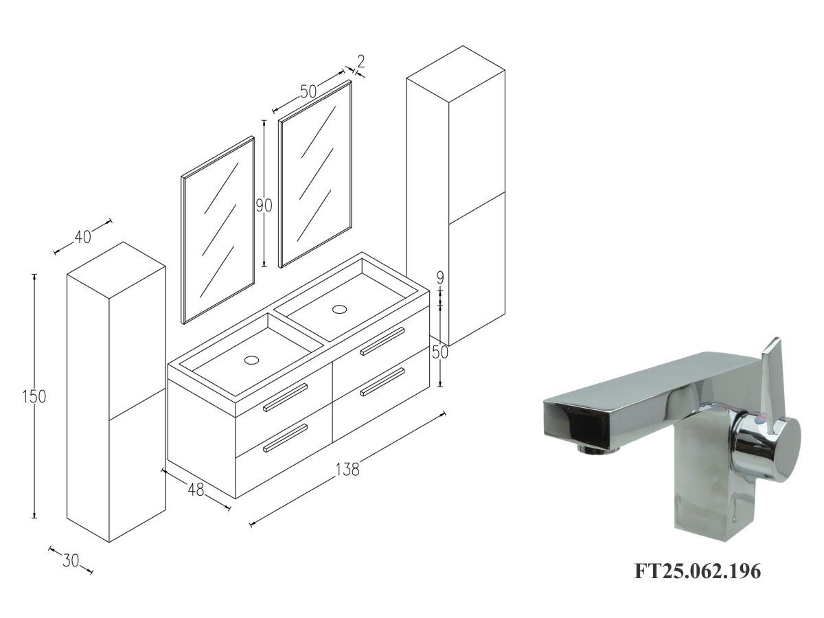 Περιγραφή:Έπιπλο Μπάνιου με τέσσερα συρτάρια που κλείνουν απαλά με μεντεσέδες soft closeΔιαστάσεις Βάσης Επίπλου: Π138xΥ50xΒ45 cm
