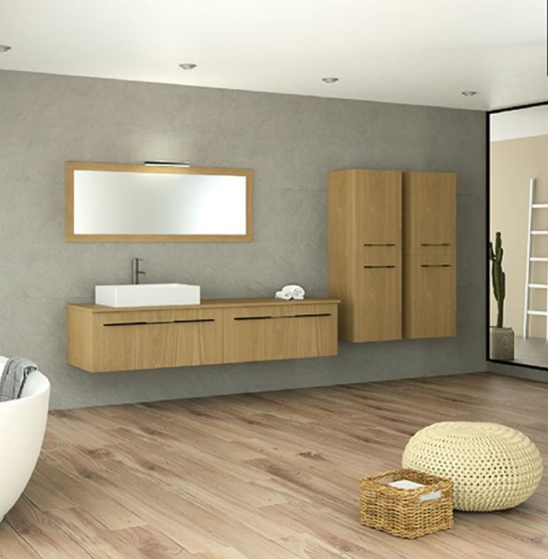 Έπιπλο Μπάνιου Μ140xB50xY35cm Βάση-Πάγκος-Νιπτήρας-Καθρέπτης-Φωτιστικό-2 Ερμάρια Μελαμίνη σε MDF Light Hickory Savvopoulos Ultima 08-8086