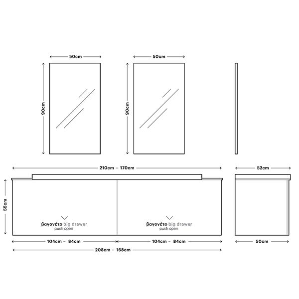 Έπιπλο Μπάνιου Μ170xB50xY55cm Βάση-Νιπτήρας-2 τμχ. Καθρέπτης MDF Λάκα Μολυβί Savvopoulos Ultima 03-9151