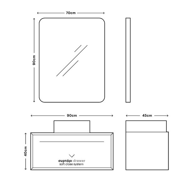 Διαστάσεις Καθρέπτη: M70xY90 εκ.