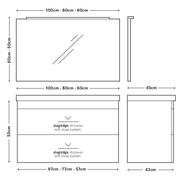 - Διαστάσεις Μ97 x Π45 x Υ55 cm