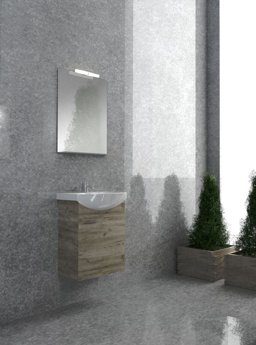 Έπιπλο Μπάνιου Σετ 50 εκ. Βάση Γκρι Κραφτ-Νιπτήρας-Καθρέπτης-Φωτιστικό Savvopoulos Combination 2 Cronos III