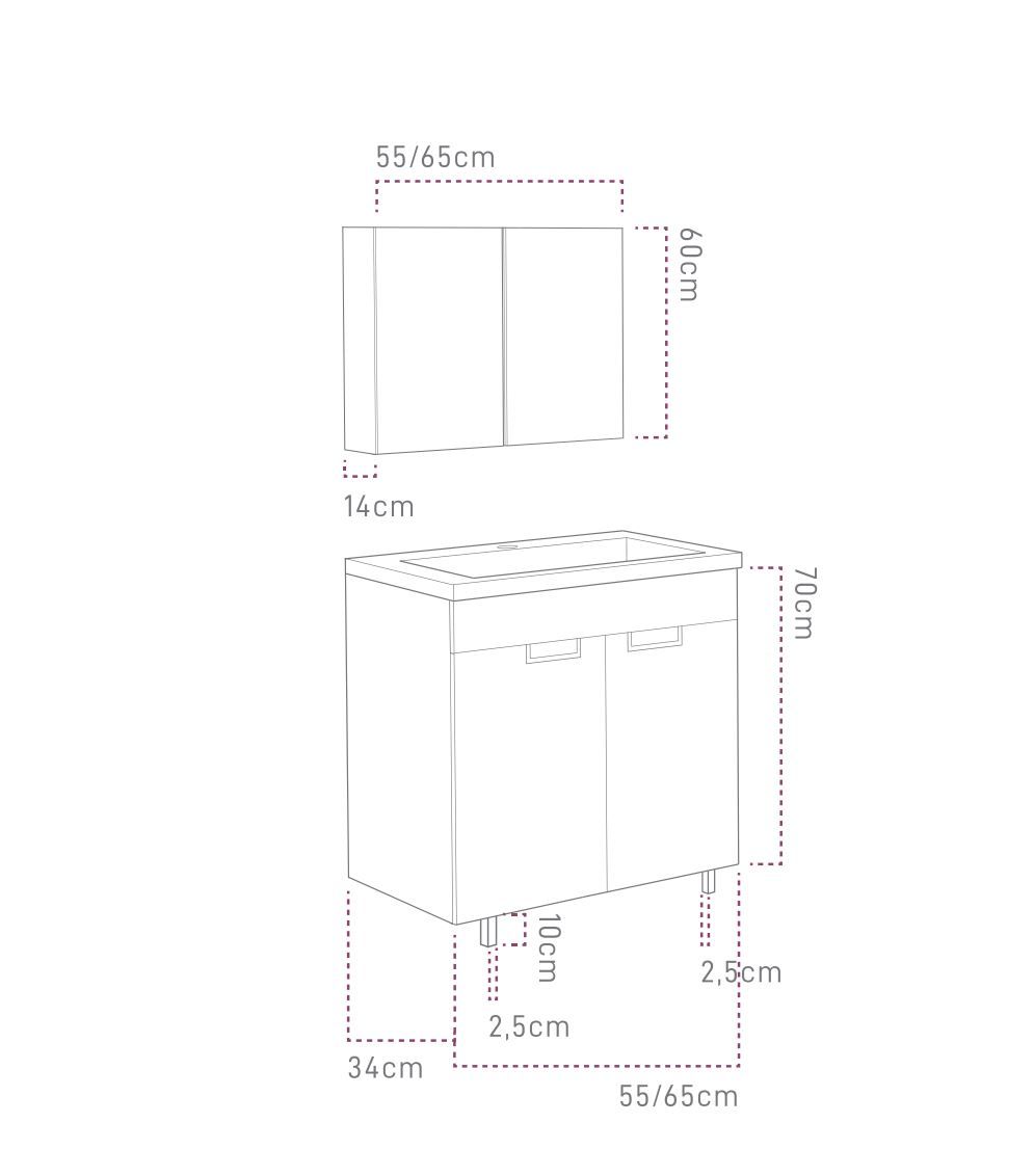Έπιπλο Μπάνιου 55 εκ. με Νιπτήρα Χρώμα Anziano Grey Sanitec Lido 55