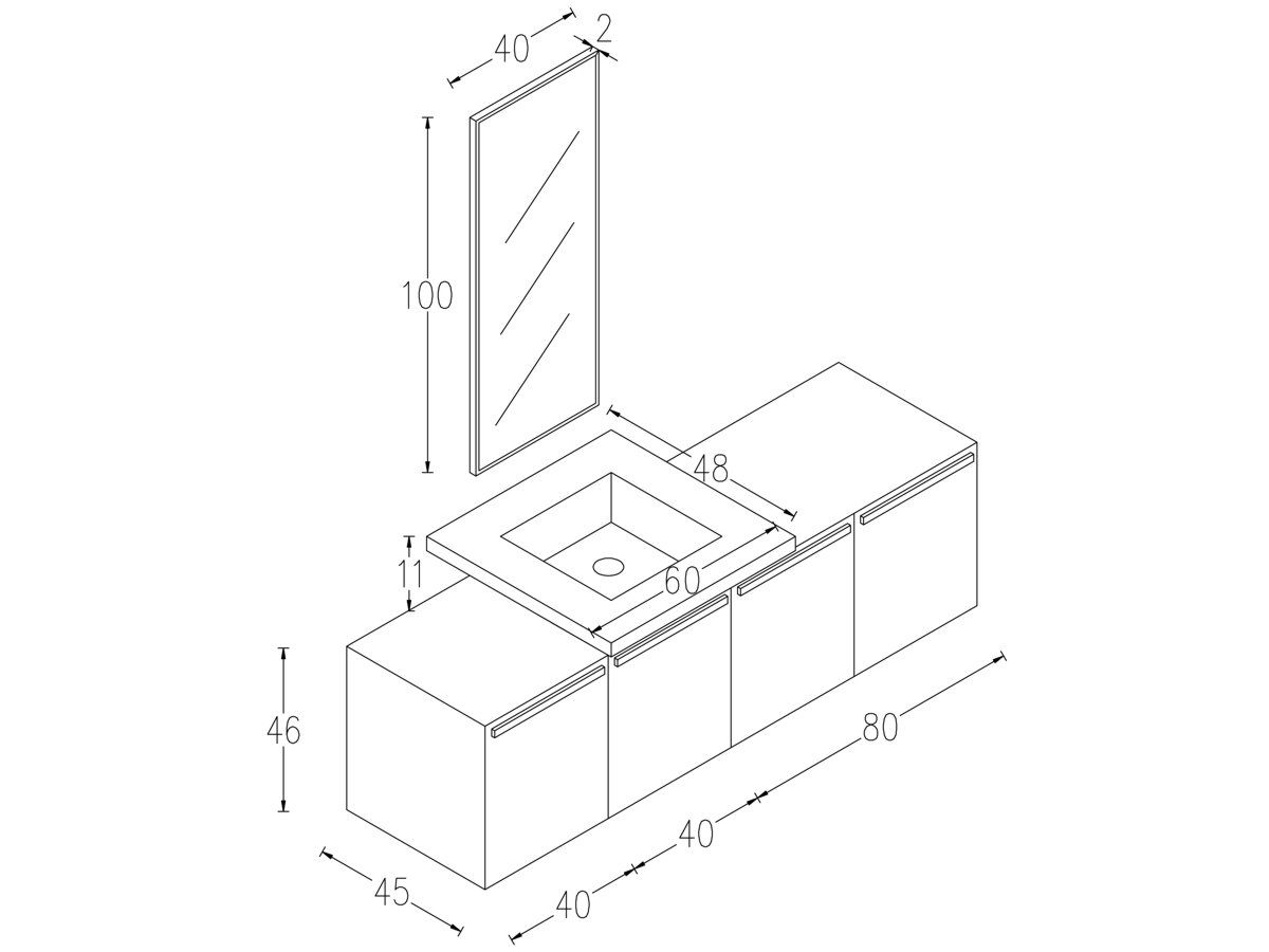 Περιγραφή: Βάση Επίπλου Κρεμαστού, δύο ντουλάπια 40εκ. & 1 ντουλάπι των 80 εκ.με εσωτερικό  ράφι. Δυνατότητα επέκτασης με ντουλάπι 40 ή 80 εκ.