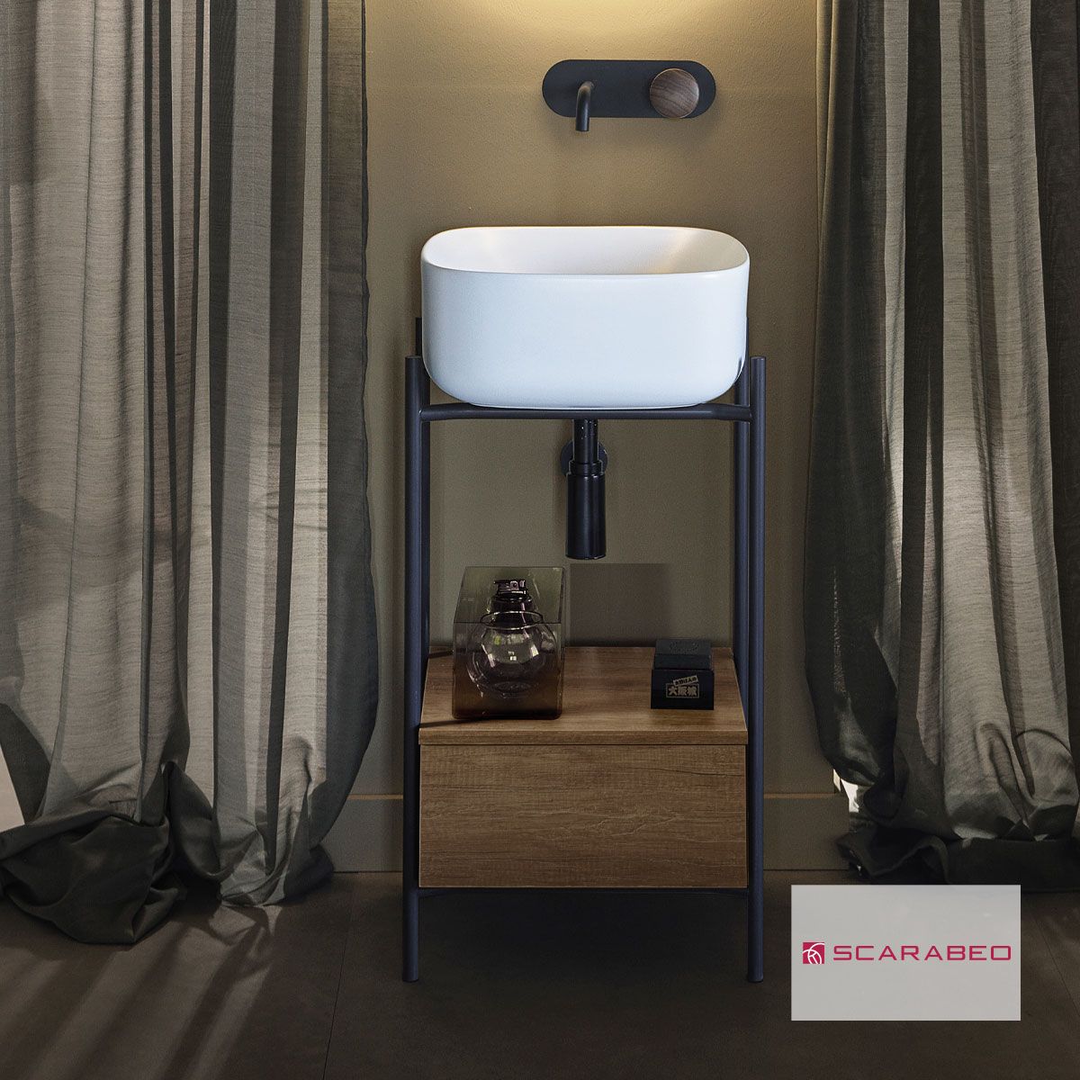 Έπιπλο μπάνιου Laila 2702-NROP με συρτάρι 2705-89 χωρίς νιπτήρα, Scarabeo 270205-NROP89