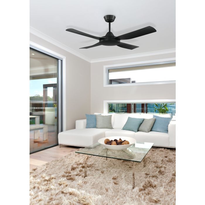 Μοντέρνος ανεμιστήρας οροφής, ιδανικός για τον αερισμό δωματίων από 13m2 έως 27m2. Κινητήρας AC κατασκευασμένος από μέταλλο σε μαύρο χρώμα και λεπίδες από πλαστικό(ABS) βαμμένες σε μαύρο χρώμα.
