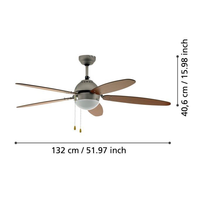 Ανεμιστήρας Οροφής Ø132x40cm Φωτισμό 1xE14 60W AC 220-240V,50Hz 3 Ταχύτητες Νίκελ-Καφέ Eglo Susale 35042