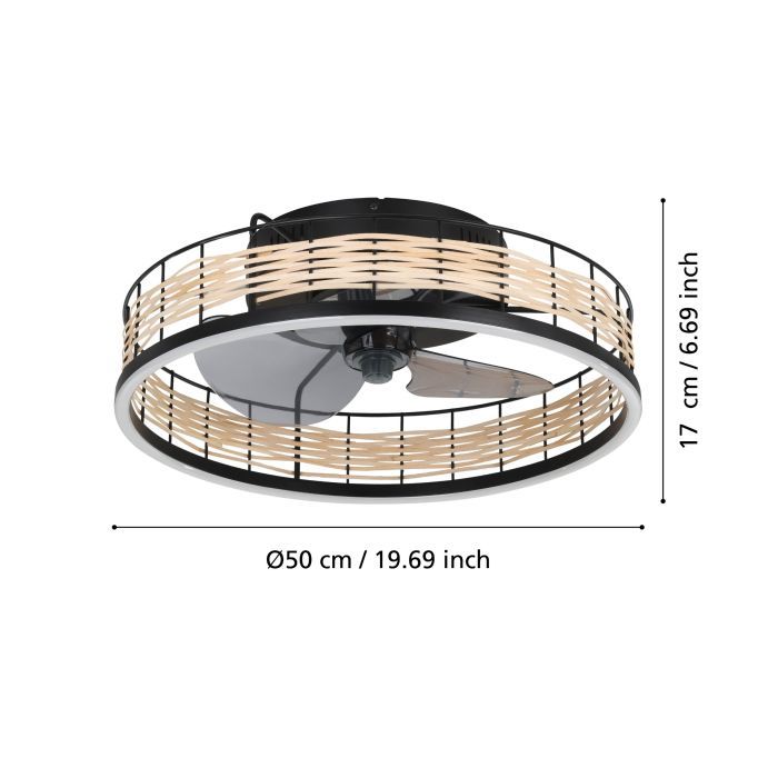 Ανεμιστήρας Οροφής Ø50xH20cm Led 28w 3600lm Tunable 2700-6500K 220-240V,50Hz Μαύρο Ματ-Ράταν Eglo Frana 35148
