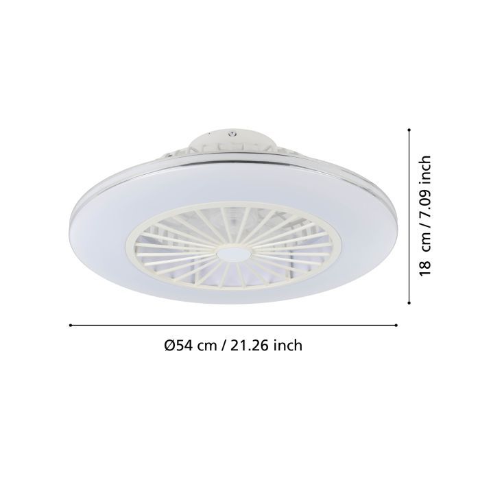 The fan is adjustable, with three different speed settings, while the integrated LED components produce a tuneable white light through the milky white diffuser.