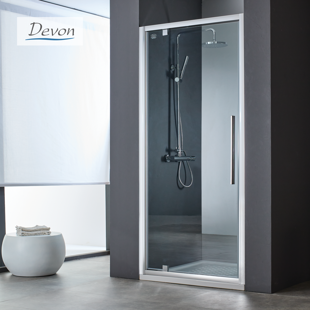 Ανοιγόμενη πόρτα ντουζιέρας PIVOT 90 ύψους 195εκ. ρυθμιζόμενη διάσταση από 87 έως 91εκ., Devon Flow Clean Glass Chrome PF90C-100