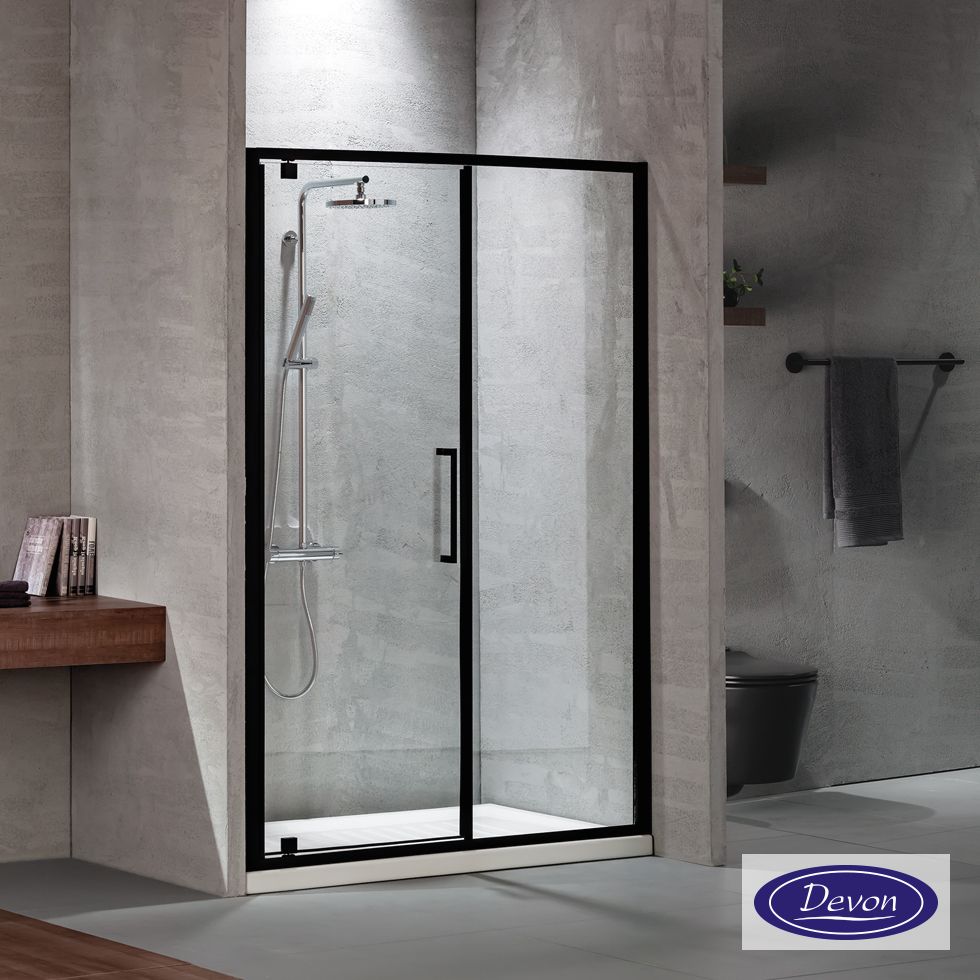Ανοιγόμενη πόρτα ντουζιέρας PIVOT INFILL 130 ύψους 195εκ. ρυθμιζόμενη διάσταση από 127 έως 131εκ., Primus Plus Clean Glass Black Matt PIR130C-400