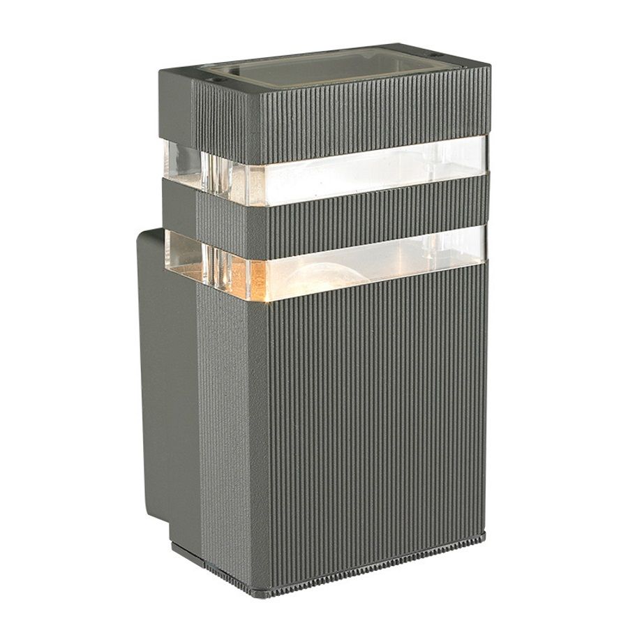 Επιτοίχιο φωτιστικό εξωτερικού χώρου(απλίκα), στο χρώμα του γραφίτη (σκούρο γκρί).Το σώμα του φωτιστικού είναι κατασκευασμένο από χυτό αλουμίνιουψηλής πίεσης και κράμα αλουμινίου.Η επιφάνειά του είναι επικαλυμμένη με διπλή αντιδιαβρωτική στρώσηώστε να παρατείνει την αντοχή του.Ο λαμπτήρας προστατεύεται από PVCυψηλής ποιότητας.| Χρώμα | Γκρι-Ανθρακί-Γραφίτης-Grey-Φιμέ-Τσιμέντο |
