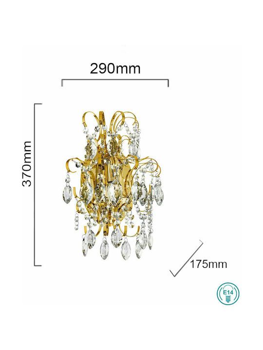 Απλίκα Επίτοιχη Μονόφωτη 1xE14 L290xH370xA175mm Ορείχαλκος -Διάφανα Κρύσταλλα Eglo Fenoullet 1 39604