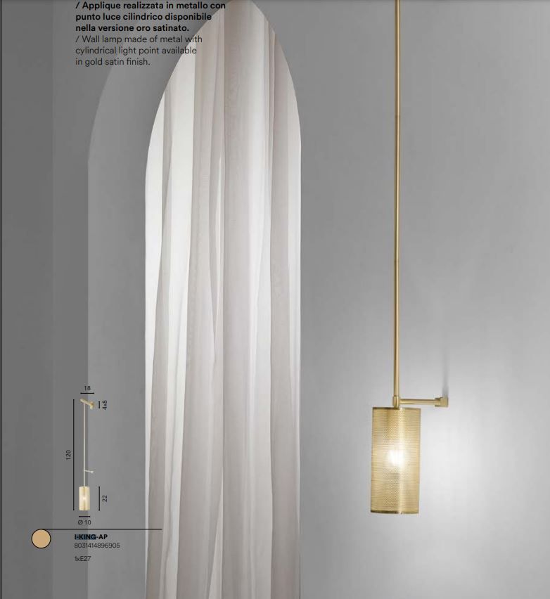 Απλίκα Επιτοίχια Ø10x22xH120cm 1xE27 Μέταλλο Χρυσό Ματ Luce Design by Faneurope I-King-AP 8031414896905