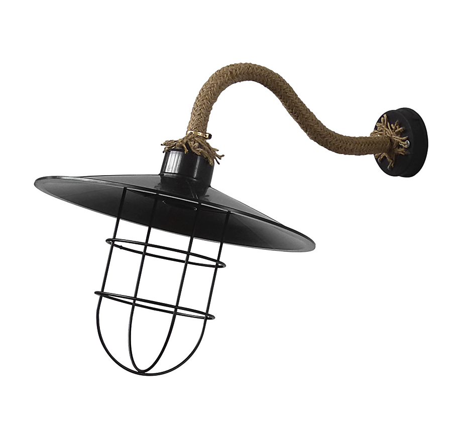 Φωτιστικό τοίχου με σχοινί UT-190AP ROPE UT-BLACK Χρώμα μαύρο/σχοινί με μεταλλικό μπράτσο,καπέλο πλαστικό με μεταλλικό πλέγμα Η25cm x53cm x Φ35cm E/27 max 10w LED IP23 Ελληνικό Προϊόν