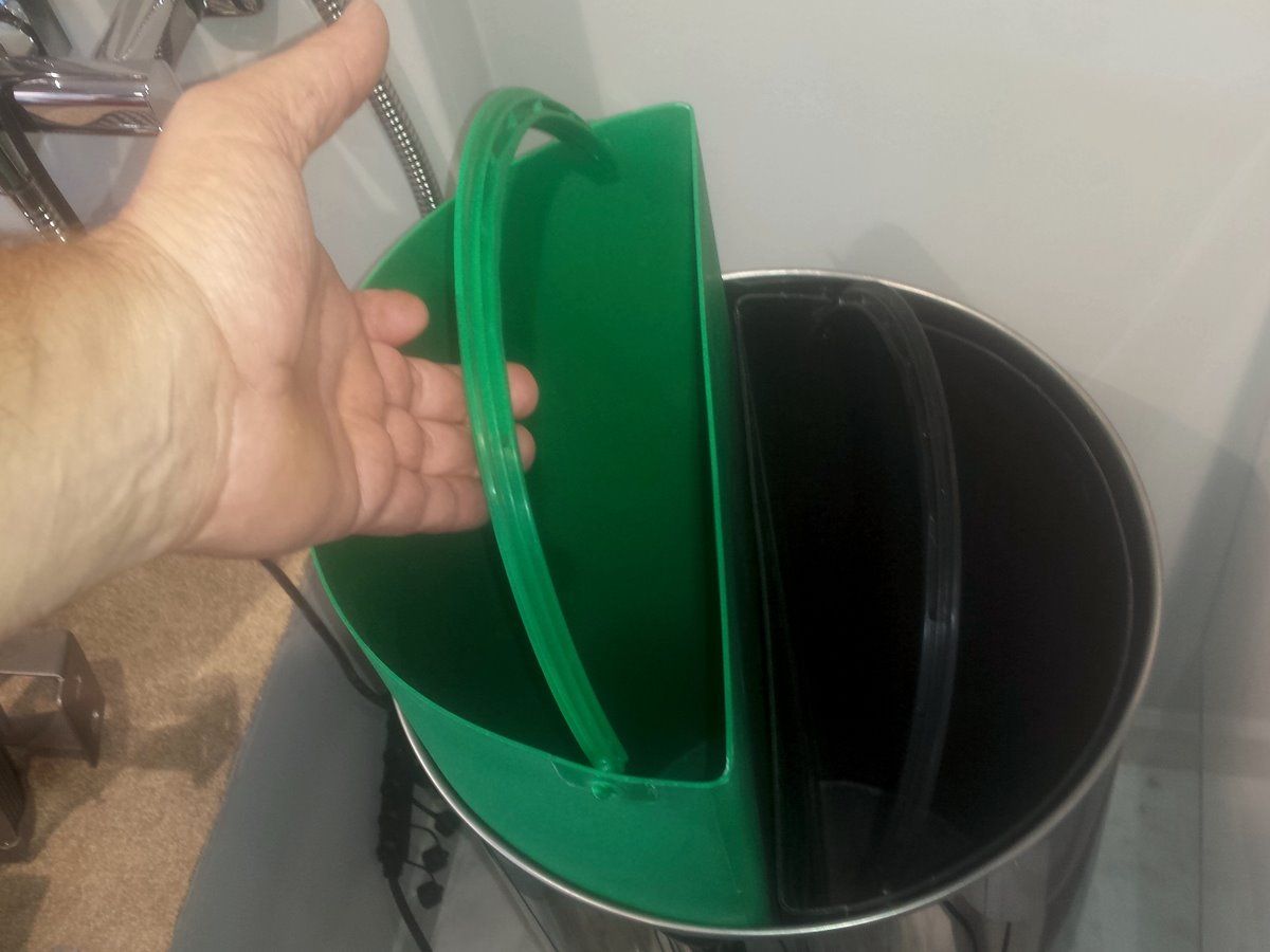 Διαθέτει δύο εσωτερικούς κάδους για διαχωρισμό απορριμμάτων.