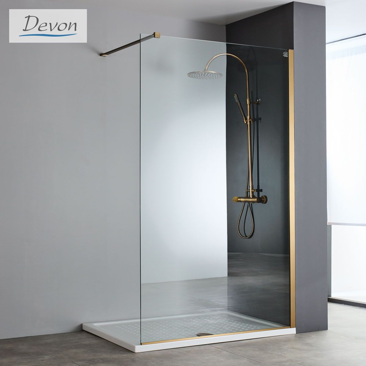 Διαχωριστικό κρύσταλλο ντουζιέρας IWIS Walk-in 80 ρυθμιζόμενo από 76 έως 78εκ., Devon Clean Glass PVD AISI304 Bronze Brushed IW80C-221