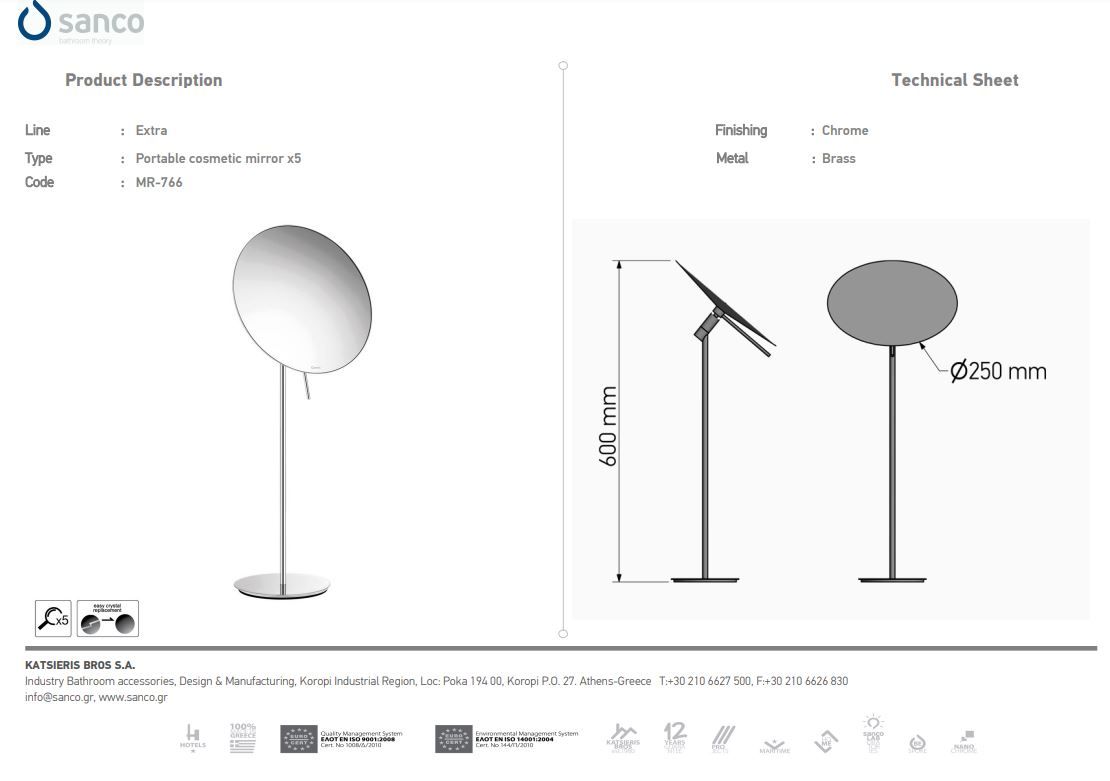 Επικαθήμενος Μεγεθυντικός Καθρέπτης x5 Ø25xH60 cm Sanco Cosmetic Mirrors MR-766-A03Ειδική Τιμή 144,00 € Κανονική τιμή 160,00 € -