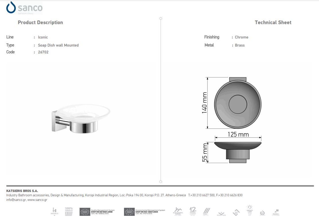 Επιτοίχιο Ντισπένσερ Sanco Iconic Brushed Nikel 26722-A73