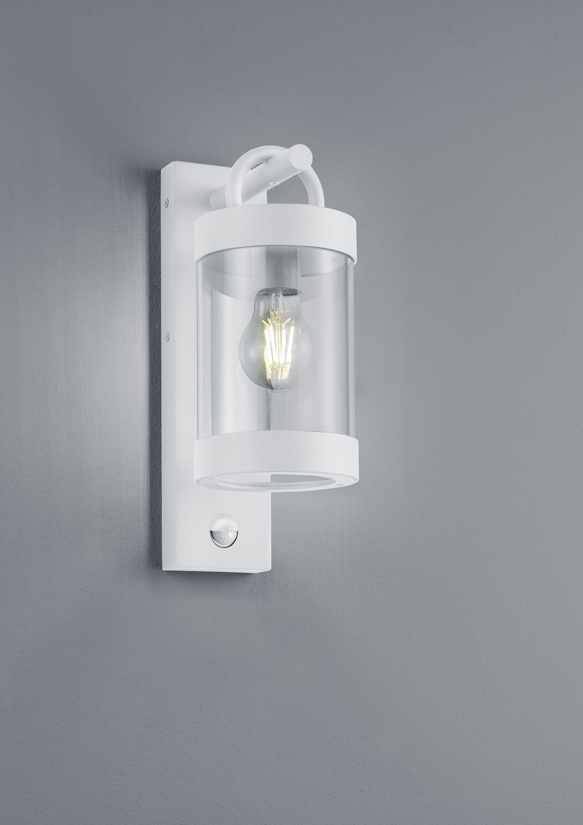 Exceptional and functional luminaire design. The wall lamp SAMBESI will be an eye-catcher on your outdoor facade with a traditional and yet modern lamp design. When the luminaire is switched on, the light is pleasantly emitted to the outdoor area and provides a decorative lighting ambience. The integrated motion sensor ensures more safety around the house in the dark, because built-in sensors automatically switch the light on and off again when there is movement in the immediate vicinity. Thanks to the weather-resistant die-cast aluminium and the IP44 protection rating, the wall light is ideal for lighting your outdoor area. The simple design in white matt in combination with a transparent glass shade sets elegant and modern accents. For energy-saving lighting, it is recommended to use an LED illuminant. These are an optimal alternative to conventional halogen lamps and stand for a high quality of light and energy savings of up to 80%. In addition, LED lamps help you benefit from a long service life, low heat generation and at the same time protect the environment.