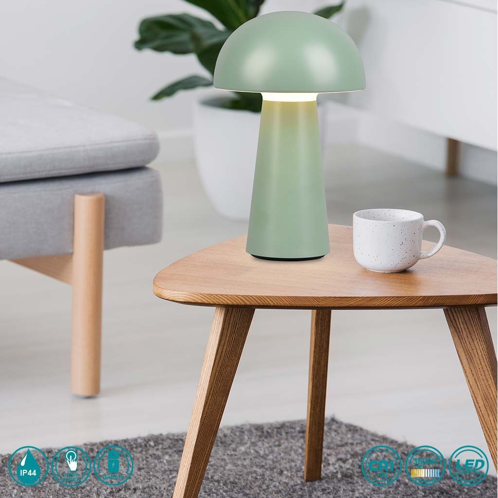 Επιτραπέζιο Φωτιστικό Επαναφορτιζόμενο Ø13xH21cm IP44 Led 2w 3000K 180lm Pistachio Green Trio RL Lennon R52176149