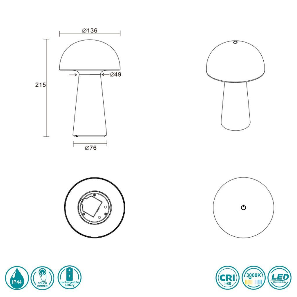 Επιτραπέζιο Φωτιστικό Επαναφορτιζόμενο Ø13xH21cm IP44 Led 2w 3000K 180lm Iluminate Yellow Trio RL Lennon R52176183