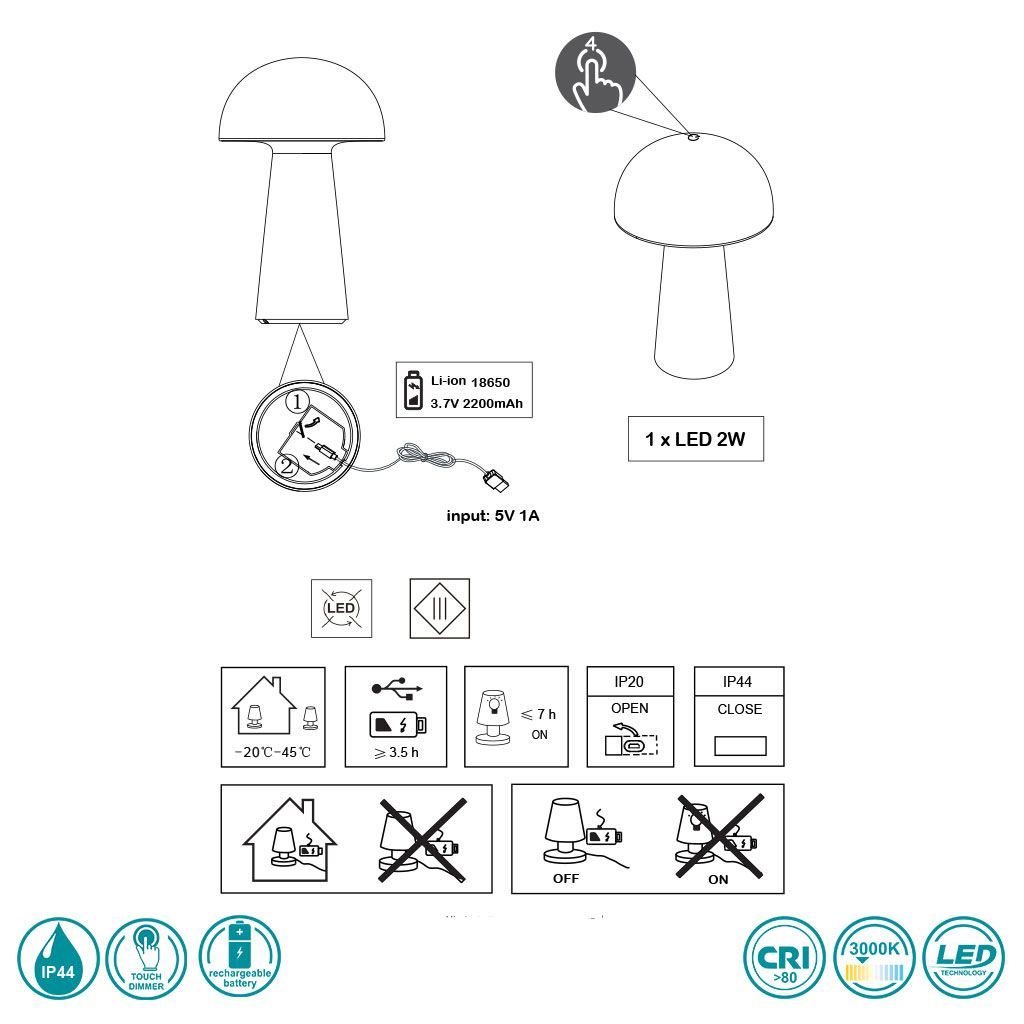 The mobile light can be easily charged via a USB port. In addition, the table lamp has a 4-fold touch, so the light intensity and thus the mood of the ambiance can be determined individually.