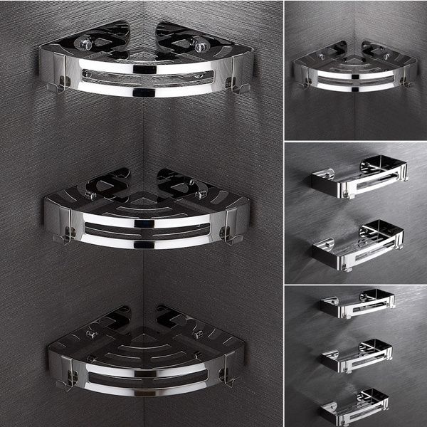 Θήκη-Ραφιέρα Μπάνιου Γωνιακή Μονή 18*18*Υ5 cm Χρωμέ Stainless Steel 304 Domistyle 270111