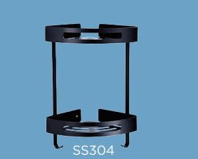 Θήκη -Ραφιέρα Διπλή Γωνιακή Υ42x22,6cm Μαύρο Ματ Stainless Steel 304 Domistyle 270112Β
