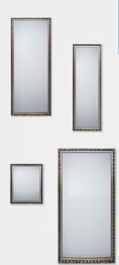 Στην οικογένεια Sonja της εταιρείας Mirrors & More ο καθρέπτης διατίθεται σε διαστάσεις 55x70cm, 50xc150c, 70x170cm, 100x200 cm σε Απόχρωση Κορνίζας Ασημί, Χρυσαφί & Μαύρο-Ασημί.