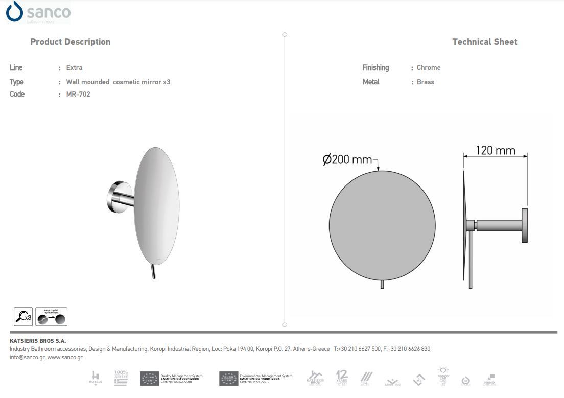 Καθρέπτης Μεγεθυντικός Επίτοιχος Dark Bronze Mat Μεγέθυνση x3 Sanco Cosmetic Mirrors MR-702-DM25