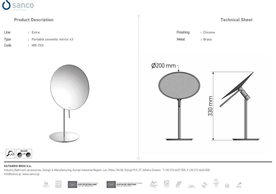 Καθρέπτης Μεγεθυντικός Επικαθήμενος W15xD15xH35 εκ. x3 Chrome Sanco Cosmetic Mirrors MR-303-A03Ειδική Τιμή 99,00 € Κανονική τιμή 110,00 € -