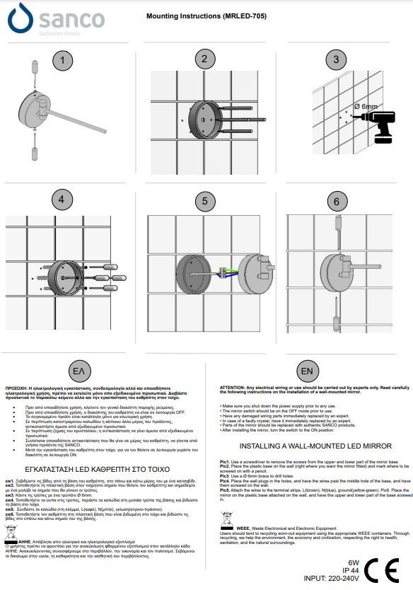 Καθρέπτης Μεγεθυντικός Επιτοίχιος Χρωμέ Φωτιζόμενος 5w Led Ø20 εκ. Μεγένθυση x3 Sanco MRLED-705-A03