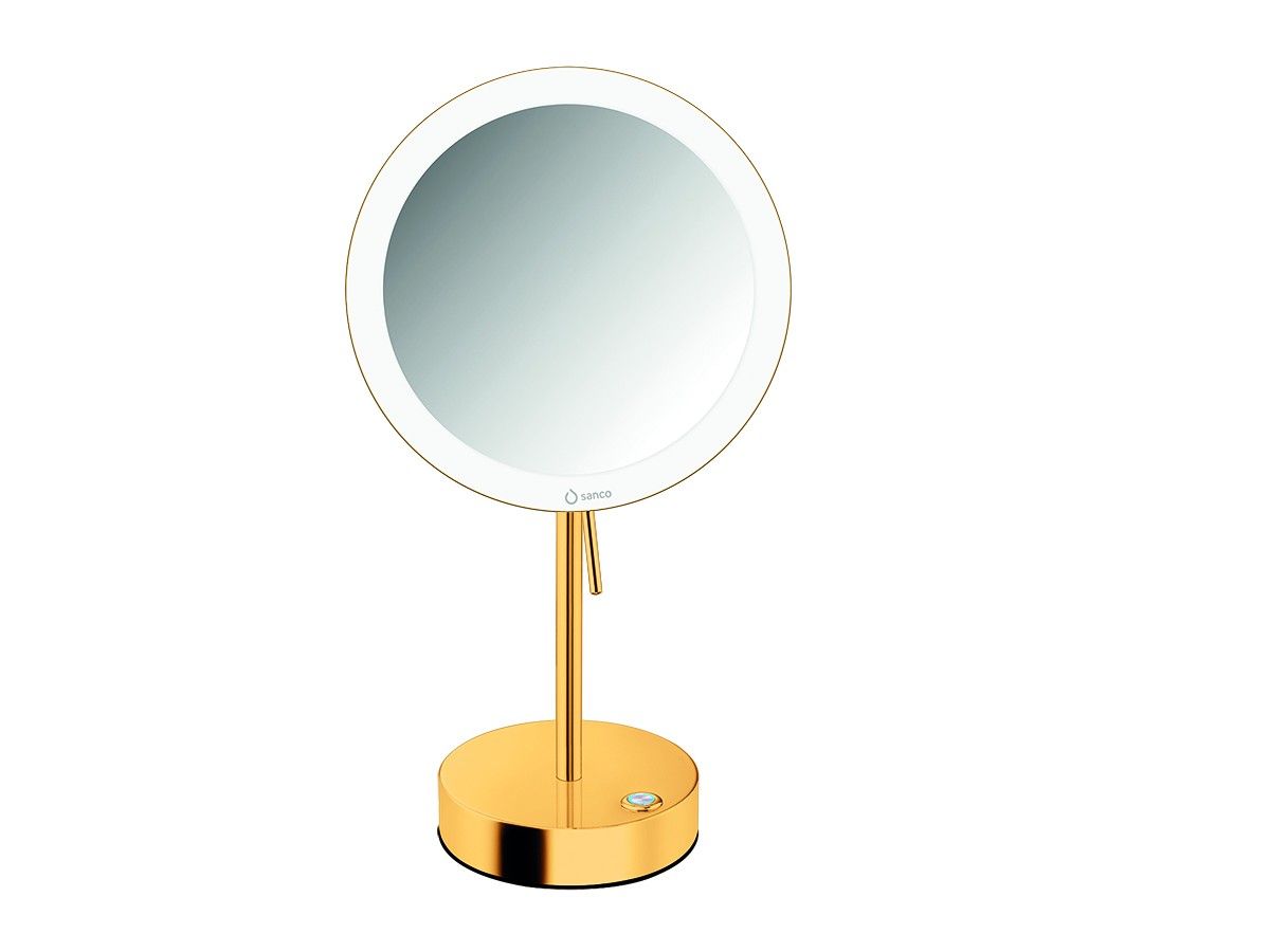 Καθρέπτης Μεγεθυντικός x3 Led Μπαταρίας 4xAA Επικαθήμενος Ø20xH36,5 cm Gold 24K Sanco Cosmetic Mirrors MRLED-903-A05