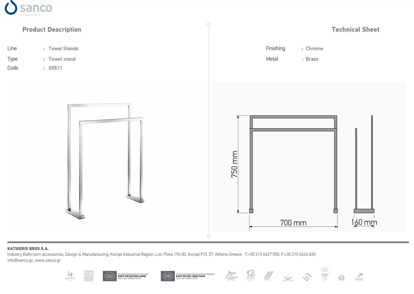 Καλόγερος-Πετσετοκρεμάστρες Επιδαπέδιος Sanco Extra Comfort Dark Bronze Matt 0511-DM25
