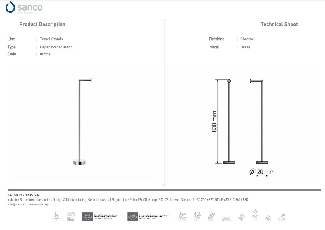Καλόγερος Χαρτοθήκη Επιδαπέδια W120 x D120 x H830mm Ορείχαλκος Sanco Bronze Mat 0551-M25
