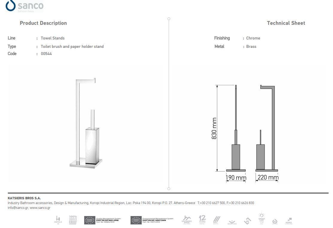 Καλόγερος με Πιγκάλ-Χαρτοθήκη Επιδαπέδιος Χρωμέ Sanco Standing 0544-A03