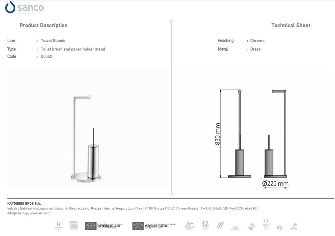 Καλόγερος W220xD190*H830 mm με Πιγκάλ-Χαρτοθήκη Επιδαπέδιος Dark Bronze Mat Sanco Stands 0544-DM25
