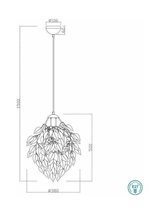 Κρεμαστό Φωτιστικό Μονόφωτο Λευκό 38xH150cm 1xE27 Trio Lighting Leavy R10461901