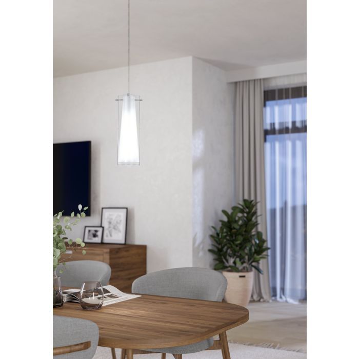 Κρεμαστό Φωτιστικό Μονόφωτο 11xH110cm 1xE27 Χρωμέ -Γυαλί Διάφανο-Οπάλ Eglo Pinto 89832
