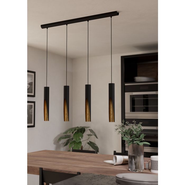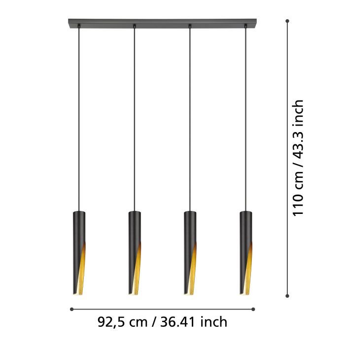 Κρεμαστό Φωτιστικό Ράγα 92,5xH110cm Τετράφωτο 4xGU10 3000K 345lm Μαύρο-Χρυσό Eglo Barbotto 900873