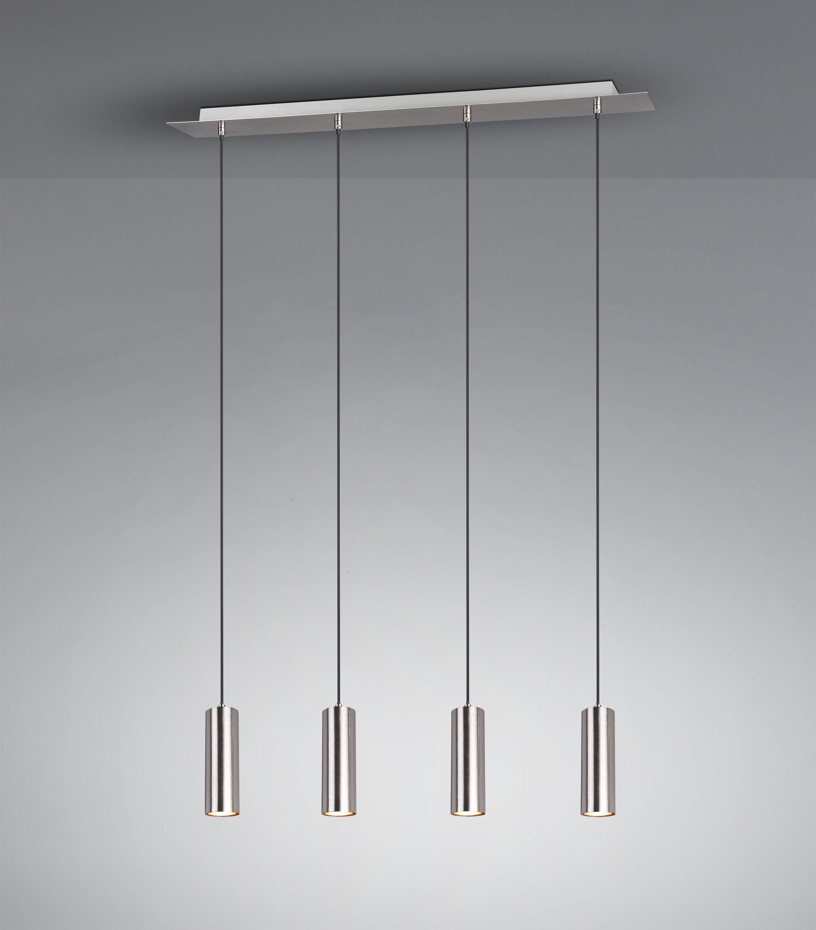 The MARLEY pendant light is not only practical in form and function, but one thing above all: simply beautiful! The light is discreet in design and impresses with its high-quality workmanship. Whether in the kitchen or in the living area: the four-light MARLEY is versatile and can be easily combined with different furnishing styles. The pendant light has a width of 75cm and is particularly effective when mounted in the centre of a dining area above an elongated dining table. During installation, the suspension lengths of the four pendants can be individually adjusted up to a length of 150cm. The pendant is designed in matt nickel and can therefore stylishly complement modern and classic colour concepts. For energy-saving lighting, it is recommended to use an LED illuminant. These are an optimal alternative to conventional halogen lamps and stand for a high quality of light and energy savings of up to 80%. In addition, LED lamps help you benefit from a long service life, low heat generation and at the same time protect the environment.