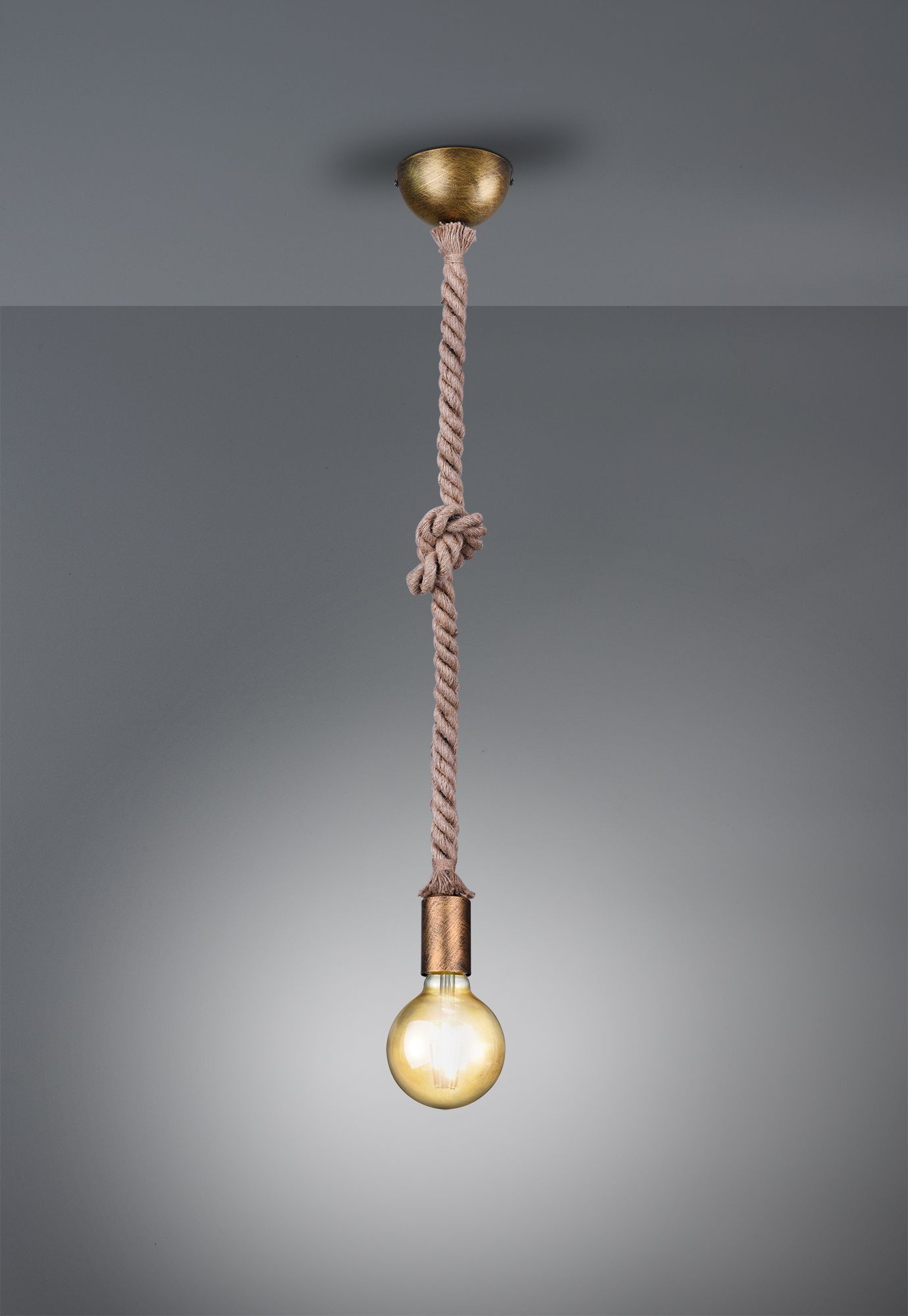 Μονόφωτο κρεμαστό φωτιστικό με σχοινί από την εταιρεία Trio Lighting σε μπρούτζινο χρώμα, με υποδοχή για έναν λαμπτήρα και ντουί E27. Διαθέτει vintage σχεδιασμό που προσδίδει στυλ και χαρακτήρα στον χώρο σας, ενώ ταυτόχρονα δημιουργεί μια ατμόσφαιρα που συνδυάζει την αισθητική του παρελθόντος με τον σύγχρονο σχεδιασμό. Είναι κατασκευασμένο από ύφασμα, υλικό που διαχέει το φως στον χώρο σας, δημιουργώντας μια χαλαρωτική αίσθηση. Mπορεί να καθαριστεί αρκετά εύκολα με ένα πανί.