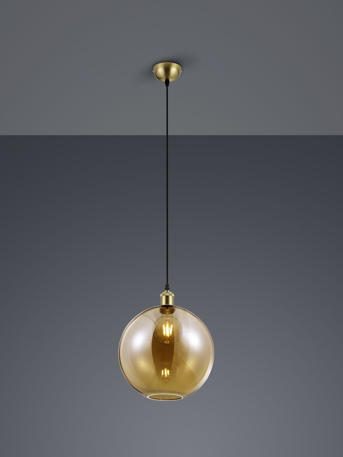 Thanks to the simple design in antique brass in combination with the amber-colored glass shade, the pendant light fits easily into any color scheme and can be combined with other colors.